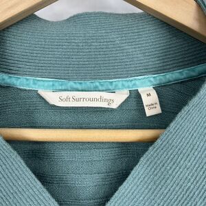 Soft Surroundings Boheme Sweater Size Medium Teal Green V Neck Tunic Ribbed