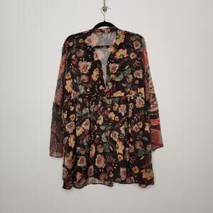 Soft Surroundings Boho Beaded Sequence Embroidered Sheer Oversized Flowy Shirt