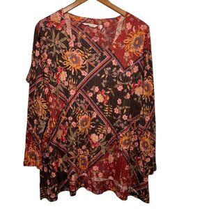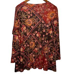 Soft Surroundings Boho Earthy Granola Cottage Indie Long Flowy Tunic Top Large