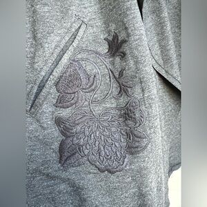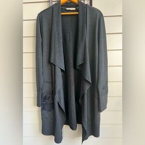 Soft Surroundings Boho L Charcoal Gray Embroidered Oversized Open Cardigan