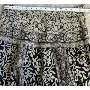 Soft Surroundings Boho Maxi Skirt Black Beige Gold Sequins Bird Medallion PM