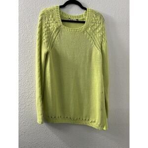 Soft Surroundings Bright Green Cable Knit Long Sleeve Pullover Medium