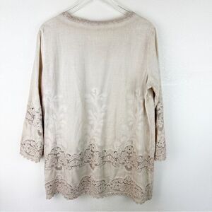 Soft Surroundings Brown Crochet Dyed Artsy Lagenlook Top Large