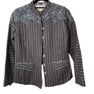 Soft Surroundings Brown Gray Striped Blazer Size Medium