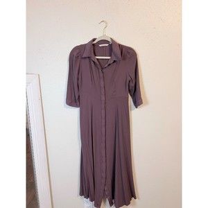Description: Relaxed Fit Collared, Covered Button-Up Front, Maxi Length, 3/4 Sleeve, Gauze Fabric Shirt Dress