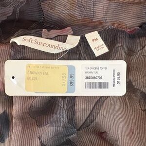 Soft Surroundings Brown/teal Tunic Jacket Top Open Front Size Petite Med NWT