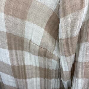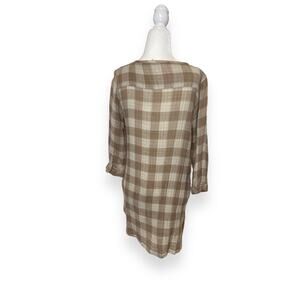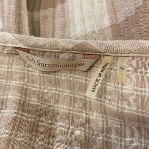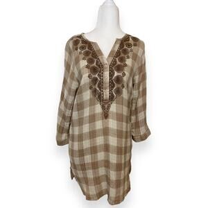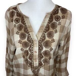 Soft Surroundings Buffalo Check Plaid 3/4 Sleeves Embroidered Blouse