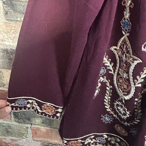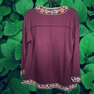 Soft Surroundings Burgundy Purple Embroidered Fleece Lined Cardigan Large