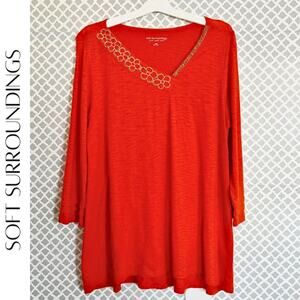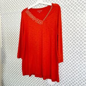 Soft Surroundings Burnt Orange-Red Beaded V-Neck Top Size Large