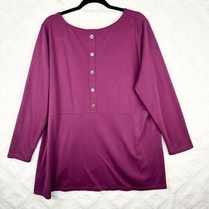Soft Surroundings Button Back Long Sleeve Tunic Size 1X Berry Wine Pockets Modal