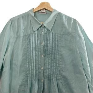 Soft Surroundings Button Up Linen Tunic Womens Large Pin Tuck Long Sleeve