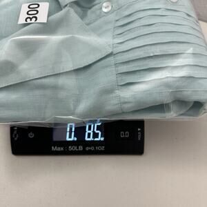 The blouse is designed with a coastal, lagenlook, office, quiet luxury, sustainable, and beach theme in mind. It has a solid pattern with mother of pearl buttons and pin tuck accents that add a touch of elegance to the overall design. The garment care is easy, and it is machine washable. This blouse is a versatile piece that can be worn in all seasons, including winter, summer, fall, and spring.