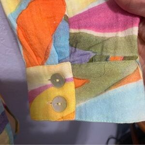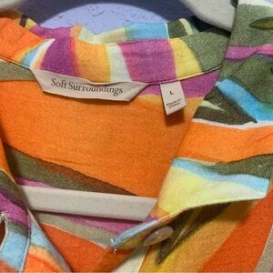 Soft Surroundings Button Up Long Sleeves Cotton Abstract Top