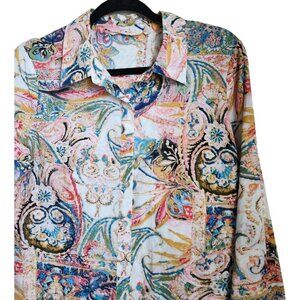 Soft Surroundings Button Up Tunic Top Women's M Paisley Floral Artsy Boho Hippie