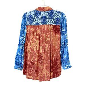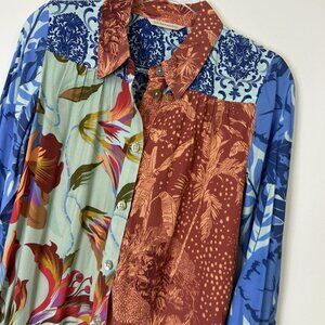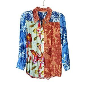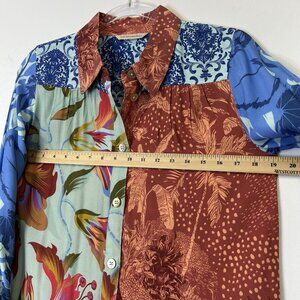 Soft Surroundings Button Up Tunic Top Womens Size Small Petite PS Boho Patchwork