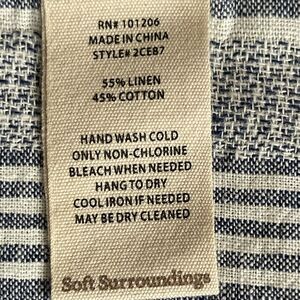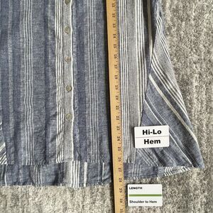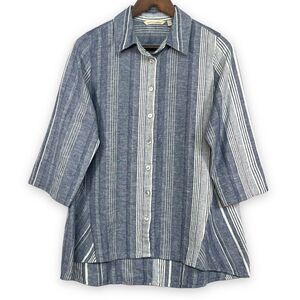 Soft Surroundings Button-Up Tunic Women Size S Blue Stripe Linen-Cotton Blend Hi-Low Hem 3/4 Sleeve Style#2CE87