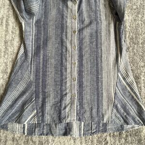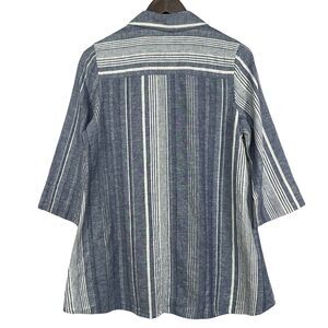 Soft Surroundings Button-Up Tunic Women Size S Blue Stripe Linen-Cotton Blend
