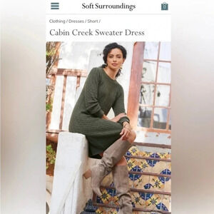 Soft Surroundings Cabin Creek Cashmere Blend Sweater Dress Career NWT Size XXS New With Tags - never worn Size XXS - Color Winter Green Lovely Sofr Surroundings Cabin Creek Cashmere blend sweater dress. ** Dress is still on their website ** Great dress to wear with boots in fall & winter months. Fabric 50% Nylon 40% Rayon 5% Wool & Cashmere Measurements laid flat Arm to arm 18” Shoulder to end of dress 37” Waist 17” unstretched