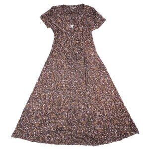 Soft Surroundings Caity Maxi Dress Faux Wrap Stretch Abstract Paisley Sz L - NWT