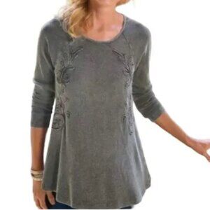 Soft Surroundings Camden Thermal Embroidered Waffle Kit Tunic Size L Black Boho