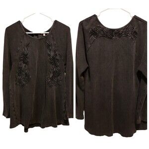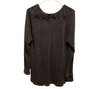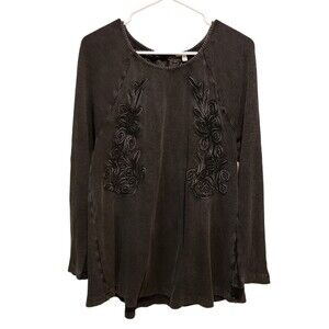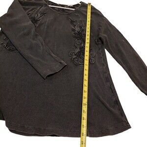 Soft Surroundings Camden Waffle Knit Dark Charcoal Black Longsleeve Top Size PL