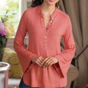 Soft Surroundings Campana Blouse size Large Pink Bell Sleeve Oversized Relaxed
