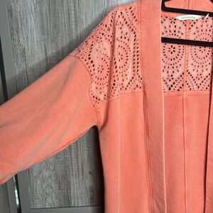 Soft Surroundings Cardigan Eyelet Salmon Orange Size M