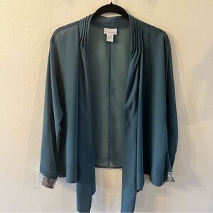 Soft Surroundings Cardigan Jacket Topper Sz Large Blue 3/4 Sleeves Sequin Sheer