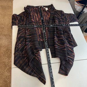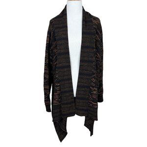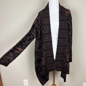Soft Surroundings Cardigan Sweater Large Cascade Draped Wool Cotton Texture Knit