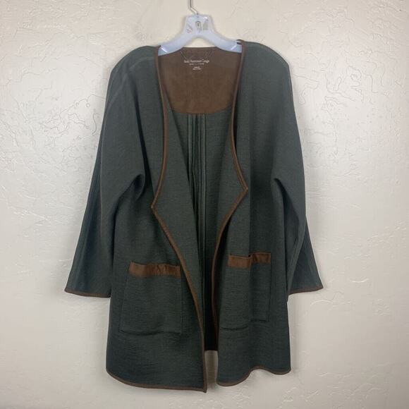 Soft Surroundings Womens Cardigan Sweater Green Long Sleeve Open Front Petites M