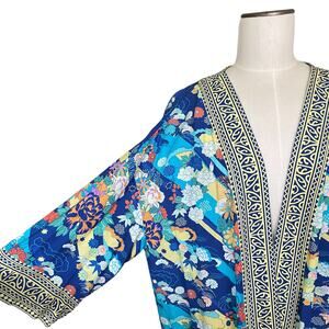 Soft Surroundings Cardigan Topper Women's L/XL Blue Yellow Floral Open Front