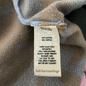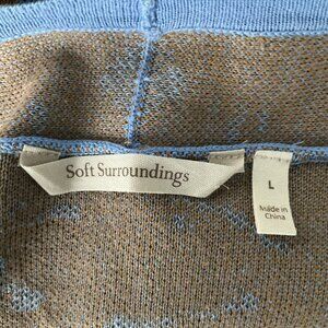 Soft Surroundings Cardigan Women Sz L Blue Cotton Open Front Knit Retro Boho
