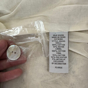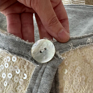 Soft Surroundings Cardigan Women XL NWOT Cream Sequin Gray Sparkle Holiday Top New Years Sea Shell Button with extra button Lace Pocket