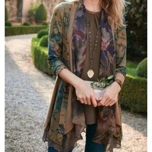 Soft Surroundings Cardigan Womens XS Petite Floral Bird Layered Bohemian
