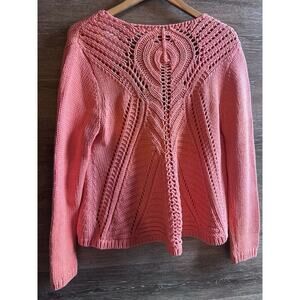 Soft Surroundings Cardigan petite Large Orange Crochet Open Knit women