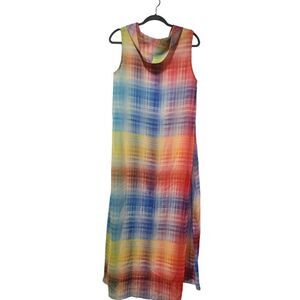 Soft Surroundings “Carnevale” Rainbow Plaid Print Cowl-Neck Maxi Dress, MODn 1960s Style | MSRP $129 | Excellent Used Condition | Lined | 100% Polyester | Machine washable | Measurements Laying Flat and Unstretched: Pit to pit 19.5" | Length 54" |