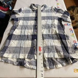 Soft Surroundings Carreaux Shirt Tunic Linen Blend Plaid 3/4 Sleeve Zip Back XL