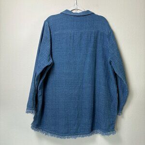 Soft Surroundings Chambray Denim Frayed Edge Jacket Size 3X Blue Pockets Artsy
