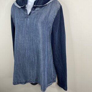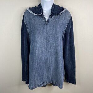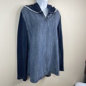 Soft Surroundings Chambray Denim Tunic Top Sz XL Pullover Hoodie Tencel Travel