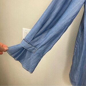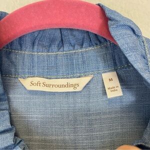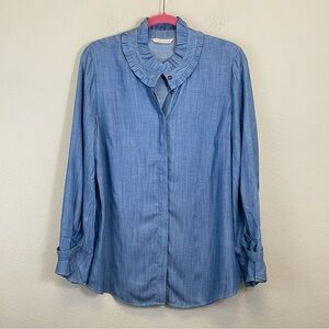 Soft Surroundings Chambray Ruffle Neck Button Down Shirt Size M Preppy