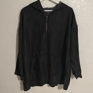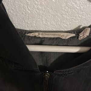 Soft Surroundings Charcoal Chambray 1/4 Zip Hooded Top