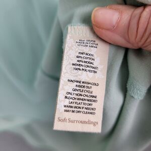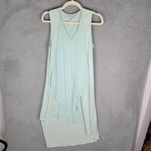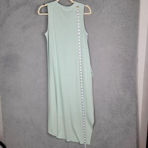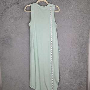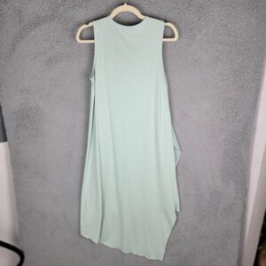 The dress is made of a modal-cotton blend material with a solid pattern and comes in a beautiful green color. The midi length and chiffon fabric type make it perfect for summer, fall, and spring seasons. It is a petite extra small size and has features such as an asymmetric hemline. Overall, this dress is a must-have for any fashion-forward woman! See the photos for approximate measurements and fabric tags.