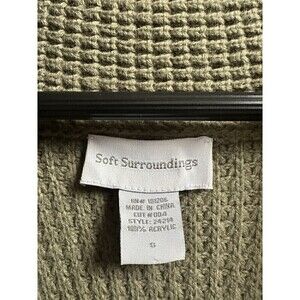 Get cozy with this Soft Surroundings Chunky Waffle Print Cardigan Sweater. The green color adds a touch of nature to your wardrobe, and the waffle print gives it a unique texture. Designed for women in size S, this cardigan is perfect for a chilly evening or a casual day out. The sweater's cardigan style and soft fabric make it comfortable to wear all day long. Its brand Soft Surroundings adds to its quality, and the cardigan's style makes it a perfect fit for any occasion.