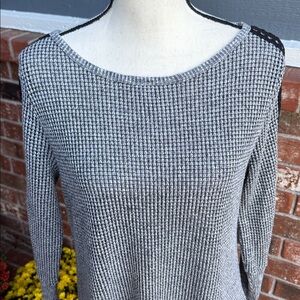 Lacy trim - from the shoulders to a boutique-designer accent to our yummy-soft waffle knit pullover. The rib knit repeats at the back yoke, and a dropped-tail hem wraps up the comfy, casual look.