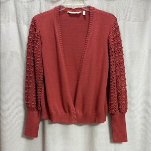 Soft Surroundings Clay Cotton Cardigan Sweater Textured balloon Sleeves SZ S