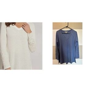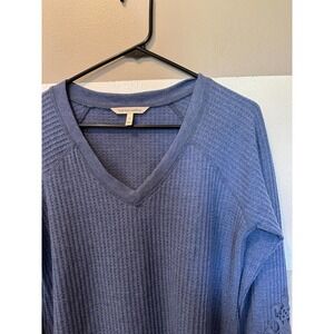 Soft Surroundings Cleo Thermal Waffle Crochet Detail V-neck Top size S