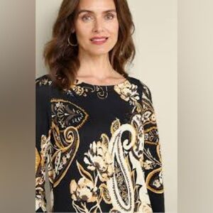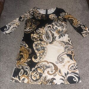 Gorgeous print in neutral colors. Black, cream, golden yellow and brown.