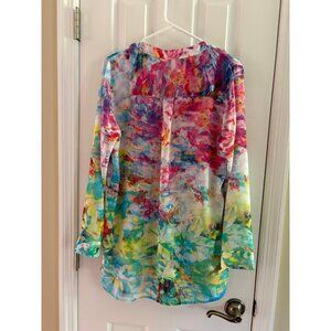 Gorgeous Soft Surroundings button down top, size medium. Semi sheer and in excellent condition. Absolutely beautiful!! Has lil loops to tuck bra straps in inside shoulders.