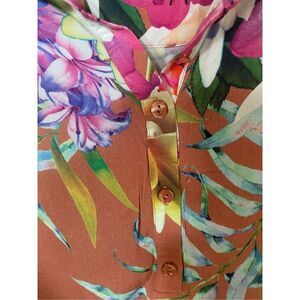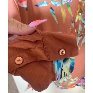 Soft Surroundings Coral Tropical Floral Pattern Button Down Long Sleeve Tunic Bl