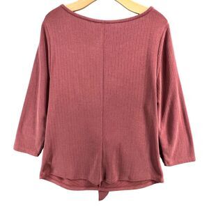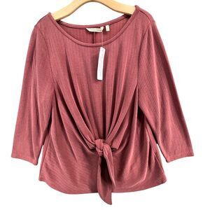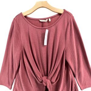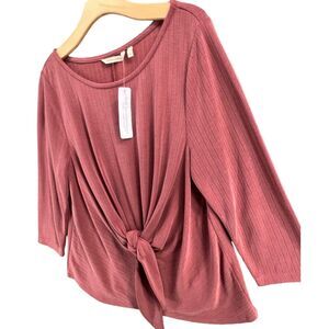 Soft Surroundings Corrie Top Womens Size XL Mauve Pink Ribbed Knit Front Knot 3/4 Sleeve Blouse